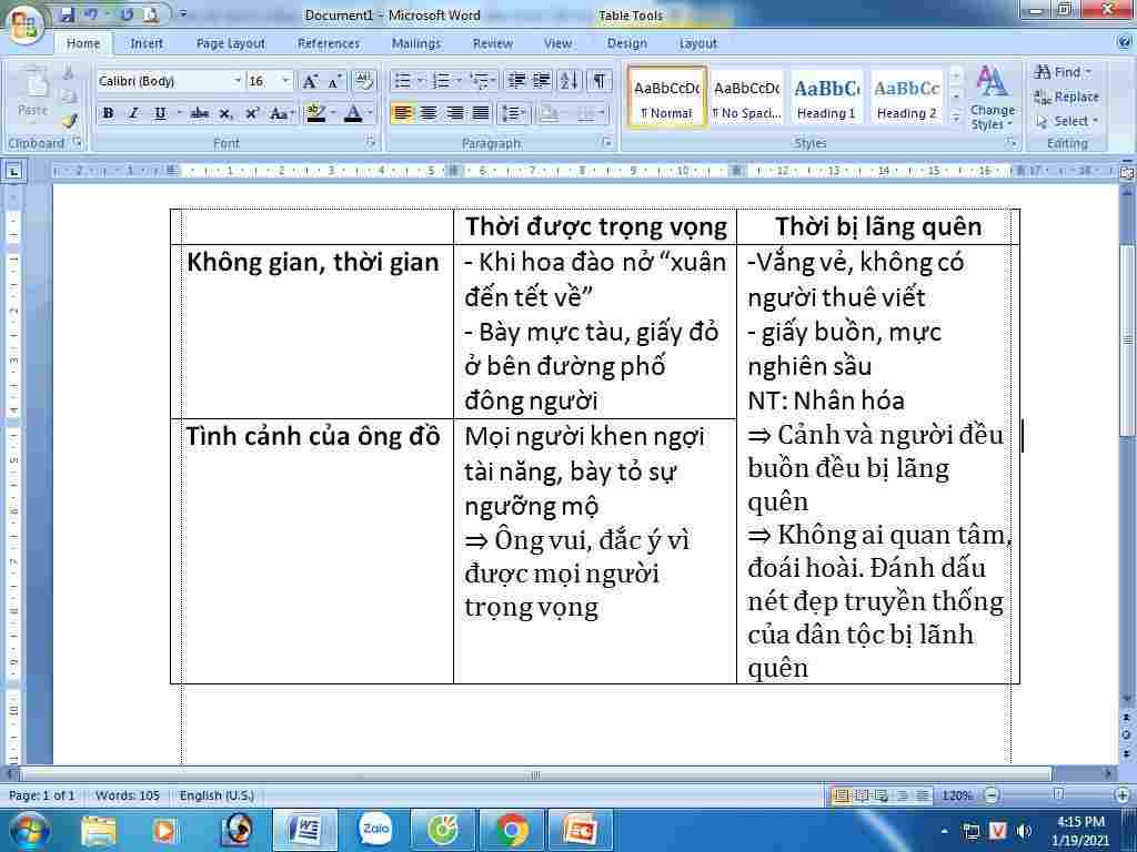 hoàn thành bảng dựa vào văn bản ông đồ của vũ đình liên