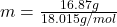 All the parameters above are provided in the question except m, so to get m we use the molar mass of water (also for ice) which is 18.01528 g/mol