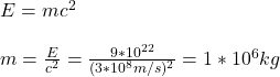 To find the mass lost by the sun in liberation of energy you use the famous Einstein’s equation: