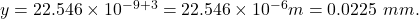 y =22.546\times 10^{-9+3}=22.546\times 10^{-6} m=0.0225\ mm.