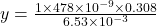 So, y = \frac{1\times 478\times 10^{-9} \times 0.308}{6.53\times 10^{-3} }