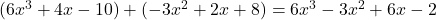 (6x^3+4x-10)+(-3x^2+2x+8)=3x^3+6x-3