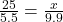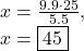 x=\frac{9.9\cdot 25}{5.5},\\x=\boxed{45}