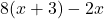 Simplify 8(x + 3) – 2x. Answer options: A) 6 x + 3 B) 7 x C) 6 x + 24 Any help is appreciated!