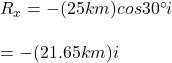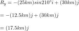 Starting from one oasis, Thaïs and Athanaël walk 25 km in a direction 30° south of west and then walk 30 km toward the north to a second oas