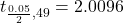Degrees of freedom = n-1 = 50-1 = 49