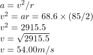 The maximum acceleration a pilot can stand without blacking out is about 7.0 g. In an endurance test for a jet plane’s pilot, what is the maximum speed she can tolerate if she is spun in a horizontal circle of diameter 85 m?