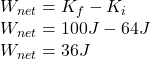 The only force acting on a 2.0 kg canister that is moving in an xy plane has a magnitude of 5.0 N. The canister initially has a velocity of 8.0 m/s in the positive x direction and some time later has a velocity of 10.0 m/s in the positive y direction. How much work is done on the canister by the 5.0 N force during this time