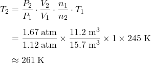 denote the temperature (in degrees Kelvins) of this gas before and after the changes.