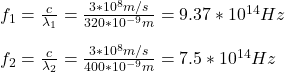 frequency range: 7.5*10^14 Hz to 9.37*10^14 Hz