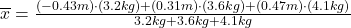 Three masses are placed along the x-axis: m1 = 3.2 kg is a distance x1 = 0.43 m to the left of the origin, m2 = 3.6 kg is a distance x2 = 0.31 m to the right of the origin, and m3 = 4.1 kg is a distance x3 = 0.47 m to the right of the origin. system of masses 1) What is the location of the center of mass of the system?
