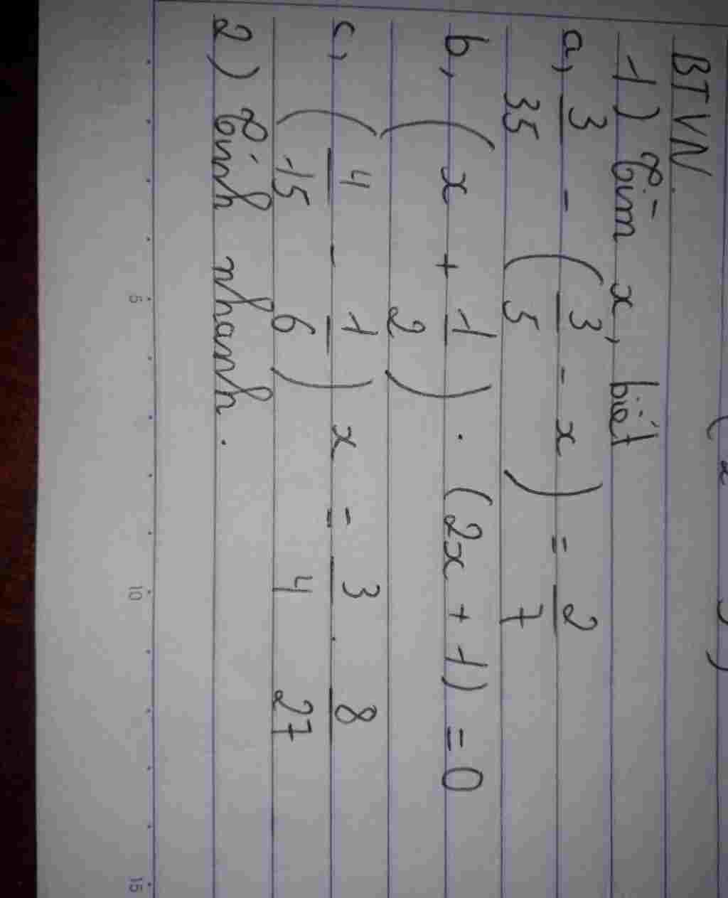 c) (4/15 – 1/6) . x= 3/4 . 8/27