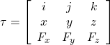 τ = i ^ (- 0.189) + j ^ (-5.6) + k ^ (33,978)