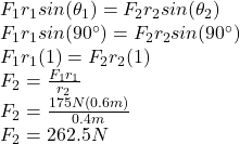 Two children push on opposite sides of a door during play. Both push horizontally and perpendicular to the door. One child pushes with a force of 175 N at a distance of 0.600 m from the hinges, and the second pushes at a distance of 0.400 m. What force (in N) must the second exert to keep the door from moving? Assume friction is negligible.