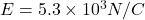 Two large parallel conducting plates carrying opposite charges of equal magnitude are separated by 2.20 cm. If the surface charge density for each plate has magnitude 47.0 nC/m2, what is the magnitude of E⃗ in the region between the plates?