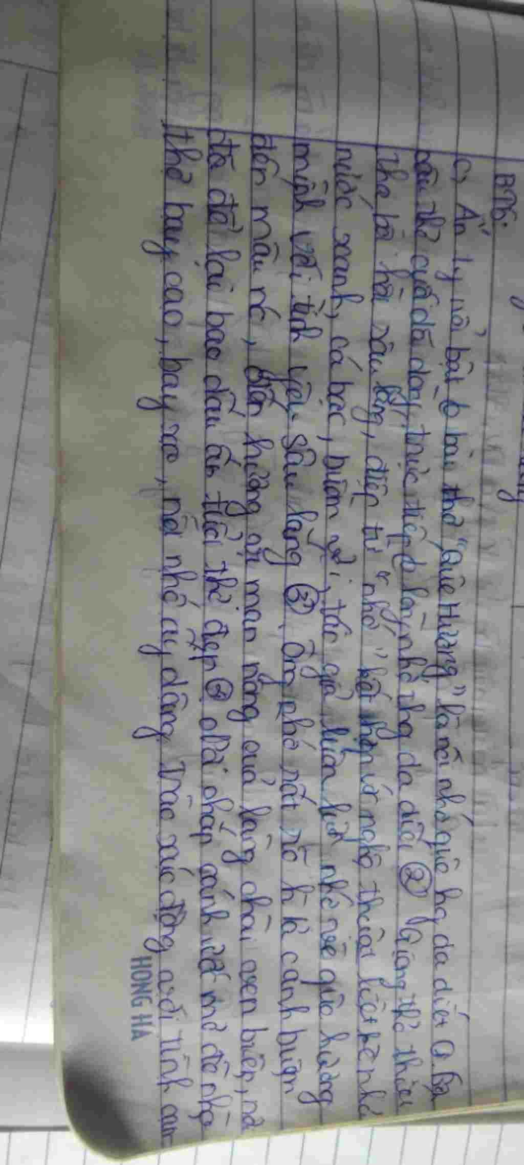 vẻ đẹp bốn câu thơ cuối trong bài thơ Quê Hương của Tế Hanh từ đó liên hệ tình cảm của mình với quê hương