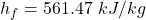 The specific enthalpy of evaporate at 300 kPa pressure