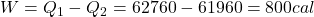We are going to make an imaginary engine using water. We are going to heat 100 grams of water to 120 C from its initial temperature of 22 C. This would be the heat extracted from the hot reservoir. Then the steam will condense back into water and will be at a temperature of 30 C. This would be the exhaust expelled into the cold reservoir. You can assume the mass of the water and the mass of the steam is the same in this case. How much work can be done using this engine? The specific heat of water is 1 cal/(g C), the specific heat of steam is 0.48 cal/(g C),