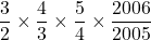 What is the product of $\frac{3}{2} \times \frac{4}{3} \times \frac{5}{4} \ldots \times \frac{2006}{2005}$?