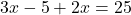3x – 5 + 2x = 25