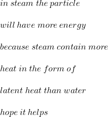 What produces more severe burns, boiling water or steam? Now explain in which physical state out of the two will the particles ha