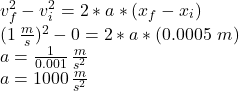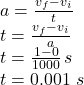 notice that we have converted the distance from mm into meters to be in agreement with the velocity units.