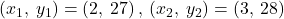 substituting the point (2, 27) and m=1 in the slope-intercept form to determine the y-intercept ‘b’