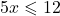 You have $12 to buy 5 goldfish for your new fish tank. Write and solve an inequality the represents the prices you can pay per fish.