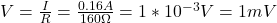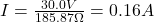 C. The current I is the same for each component of the circuit. Then, the voltage in the resistor is: