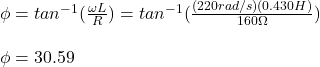 Part E: What is the phase angle ϕ of the source voltage with respect to the current? ( Answer: ϕ = ? degrees )