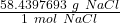 Now we can use the molar mass to create a ratio. We know there are 58.4397693 grams of NaCl in 1 mole of NaCl.